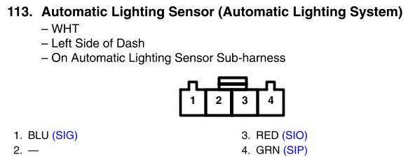 View 113 - Automatic Lighting Sensor Connector View (Automatic Lighting System)