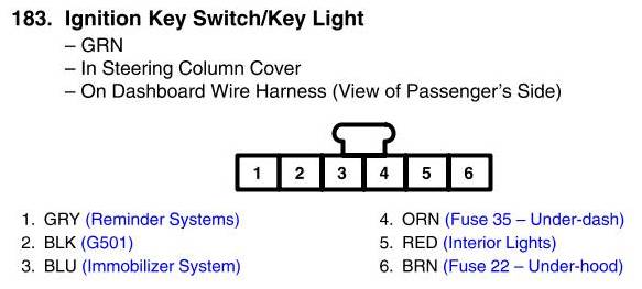 View 183 - Ignition Key Switch/Key Light Connector View