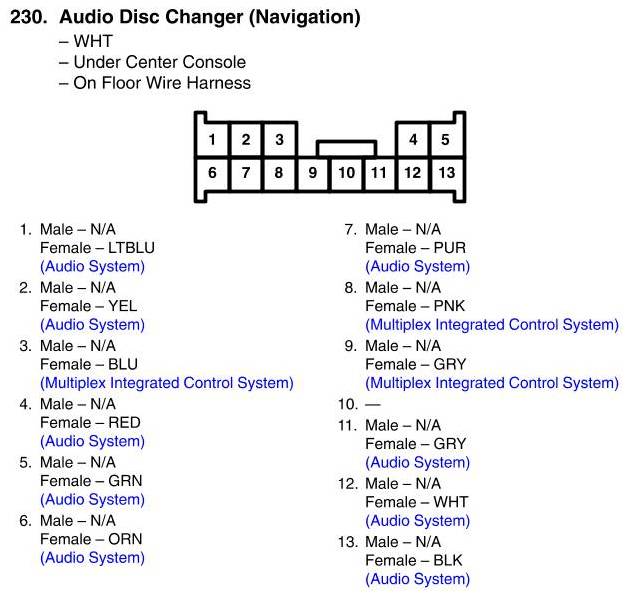 View 230 - Audio Disc Changer Connector View (Navigation)