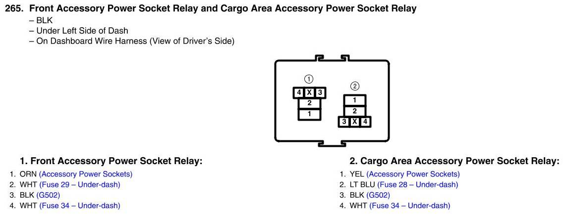 View 265 - Front Accessory Power Socket Relay And Cargo Area Accessory Power Socket Relay Connector View