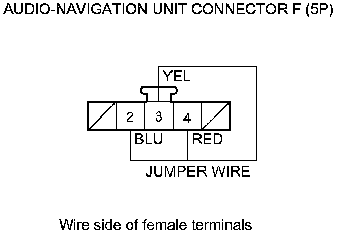 12. '07-09 models: Connect audio-navigation unit connector F (5P) No. 2, 3, and No. 4 terminals with a jumper wire.