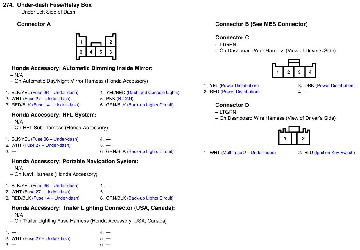 Under-dash Fuse/Relay Box Connector View