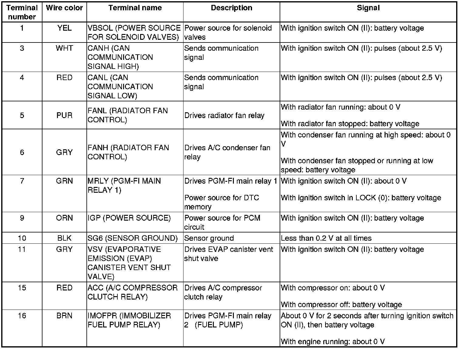 After the ignition switch is turned to LOCK (0), the PCM stays on (about 60 minutes). If the PCM connector is disconnected during this time, the PCM may be damaged. To cancel this mode, disconnect the negative cable from the battery or jump the SCS line with the HDS after the ignition switch is turned to LOCK (0).