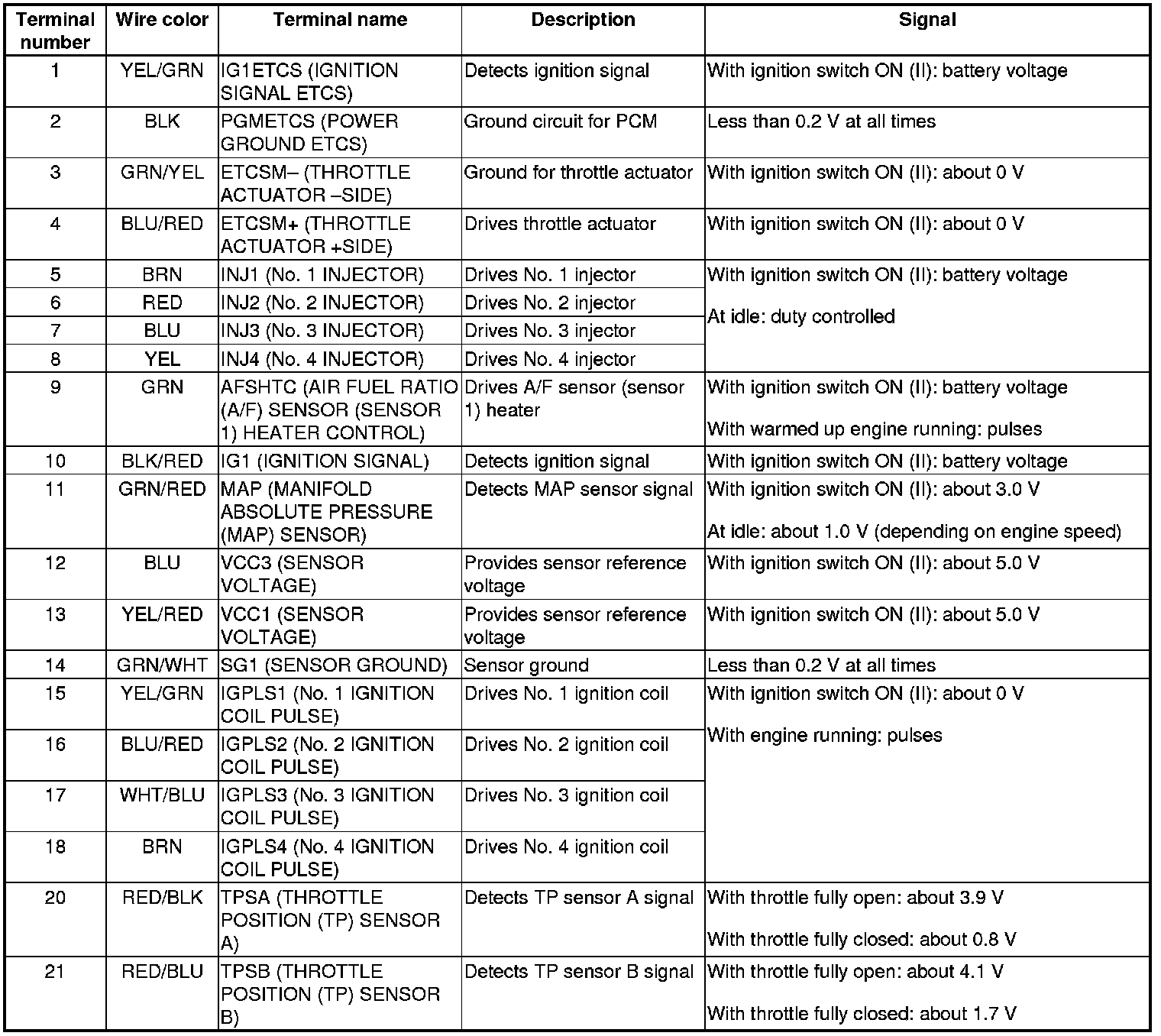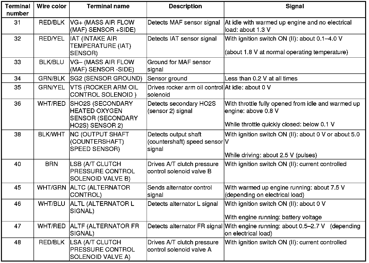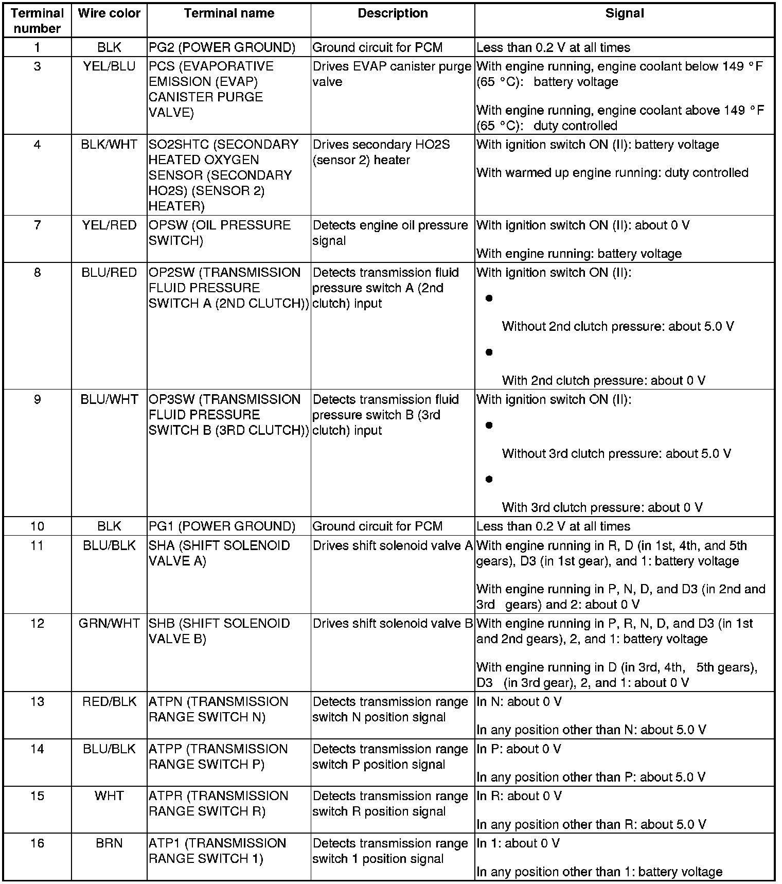 PCM Inputs and Outputs at PCM Connector A ((square)) (49P)