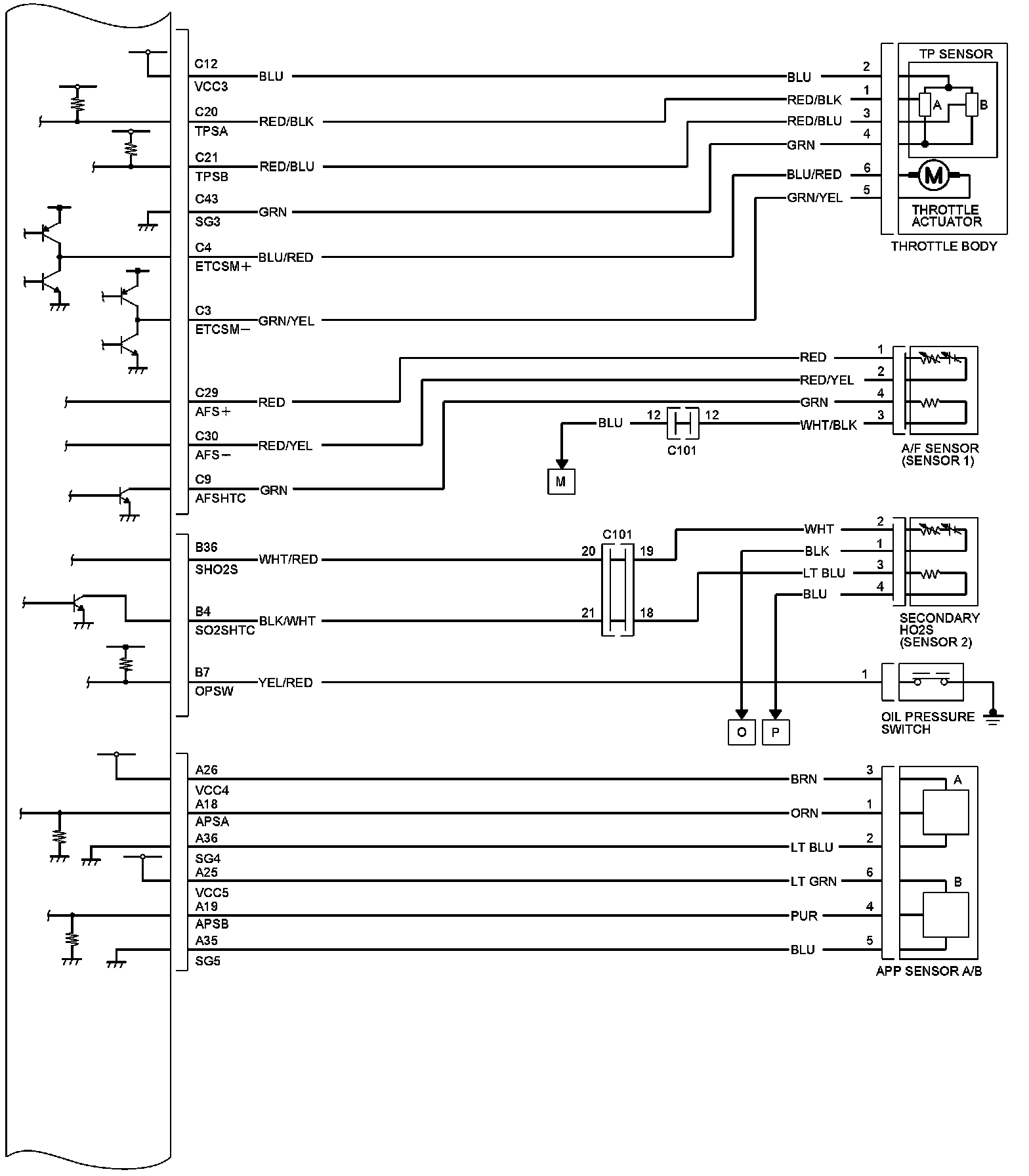 PCM Inputs and Outputs at PCM Connector C ((circle)) (49P)
