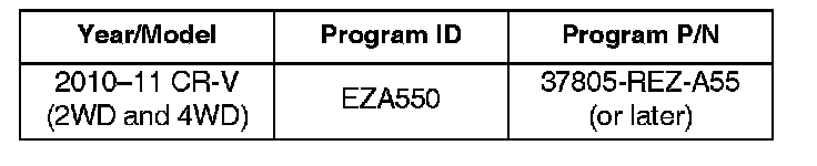 Update the PGM-FI software with the HDS. Refer to Service Bulletin 01-023, Updating Control Units/Modules.