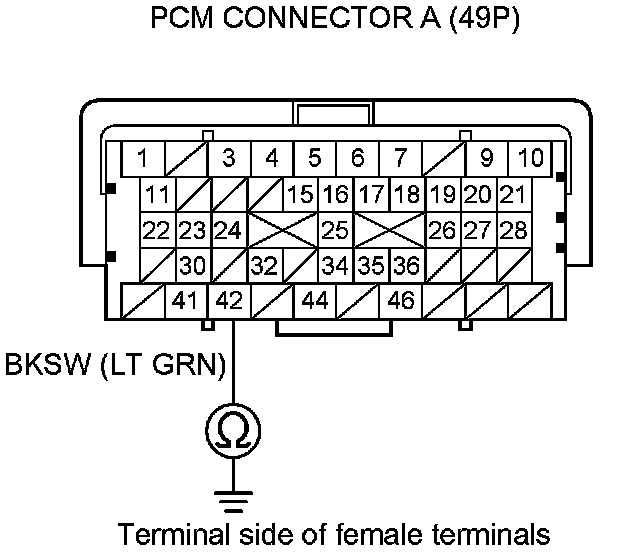 8. Check for continuity between PCM connector terminal A42 and body ground.