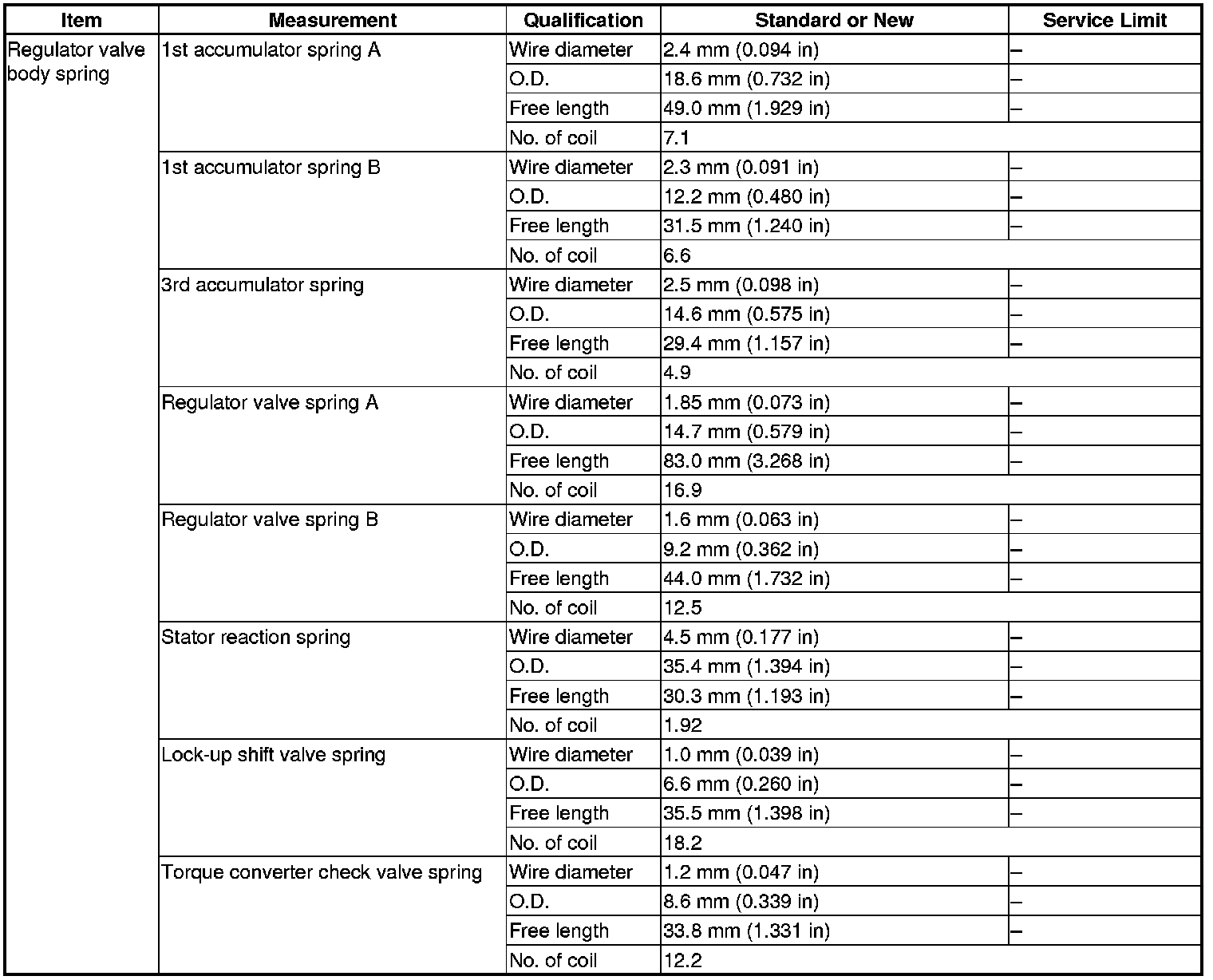 Regulator Valve Body Spring Specification(s)