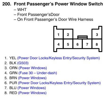 View 200 - Front Passenger's Power Window Switch Connector View