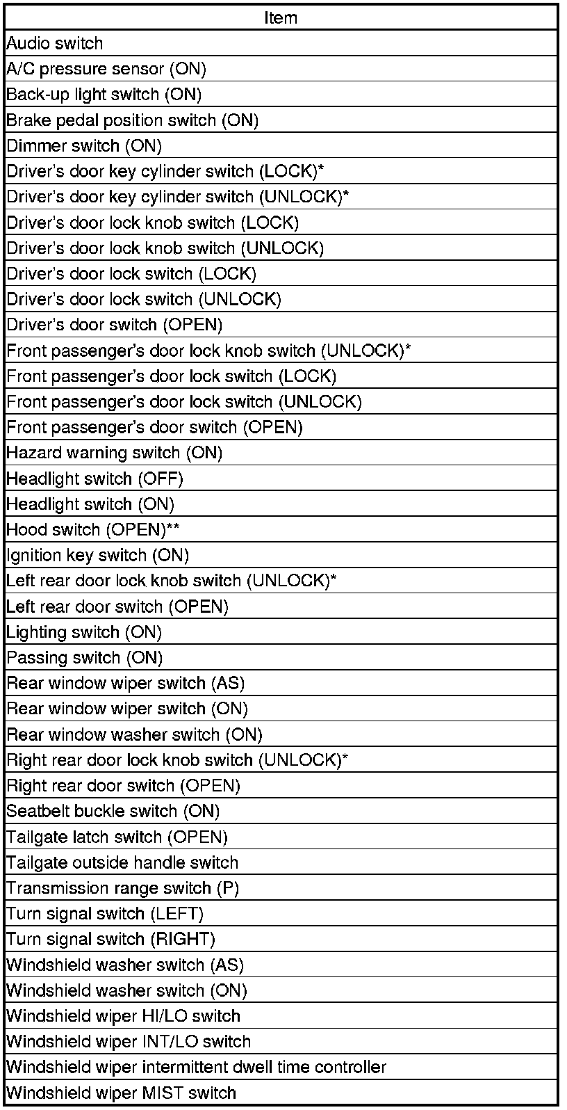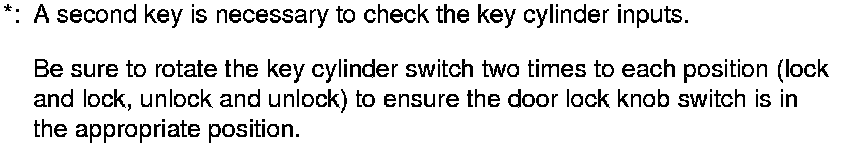 11. The following table lists the circuits that can be checked in Test Mode 2. Operate the switch that is most closely related to the problem. If the circuit is OK, the ceiling light will blink once. If the circuit is faulty, there will be no indication.