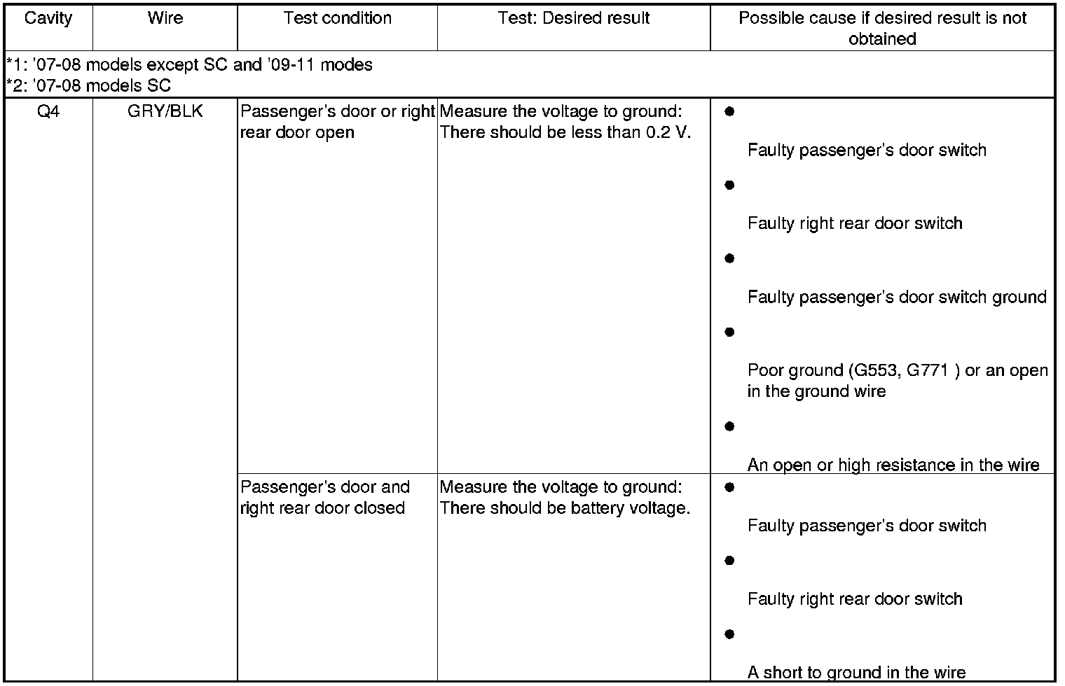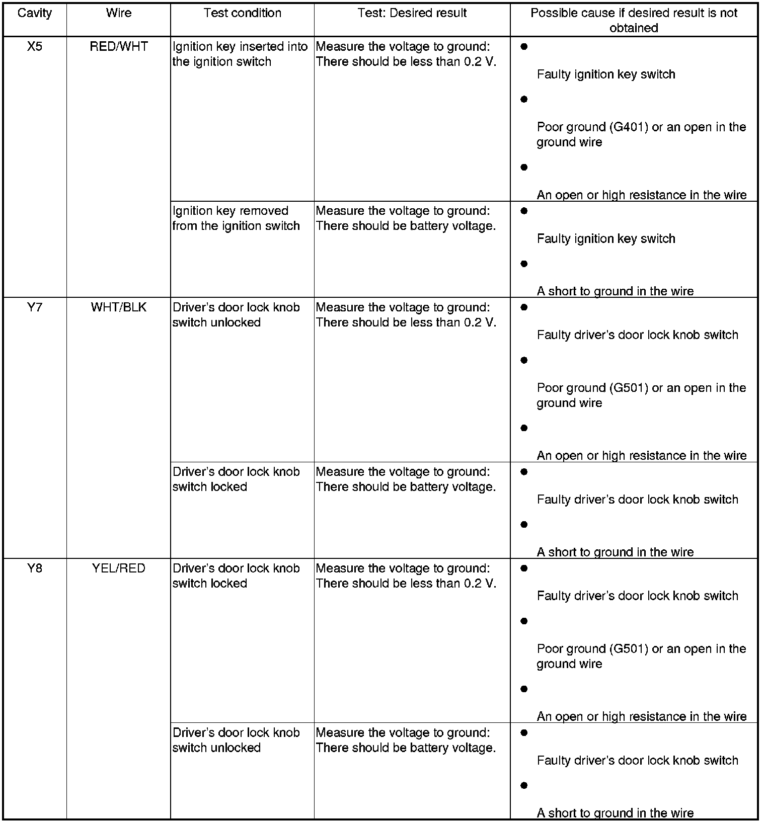 Keyless/Power Door Locks (Multiplex Control Unit) Input Test