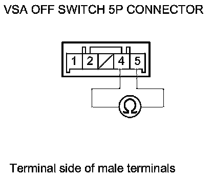 6. On the switch side, check for continuity between VSA OFF switch 5P connector terminals No. 4 and No. 5. There should be continuity at all times.