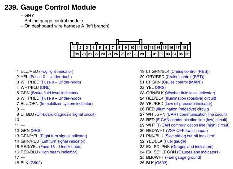 View 239 - Gauge Control Module Connector View