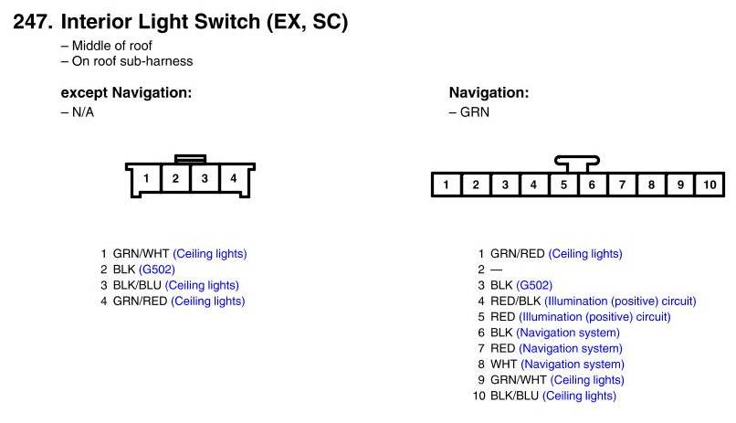 View 247 - Interior Light Switch Connector View (EX, SC)