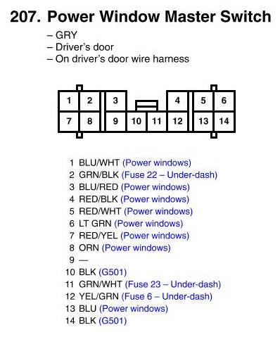 Power Window Master Switch Connector View