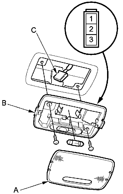 4. Disconnect the 3P connector (C) from the ceiling light housing.