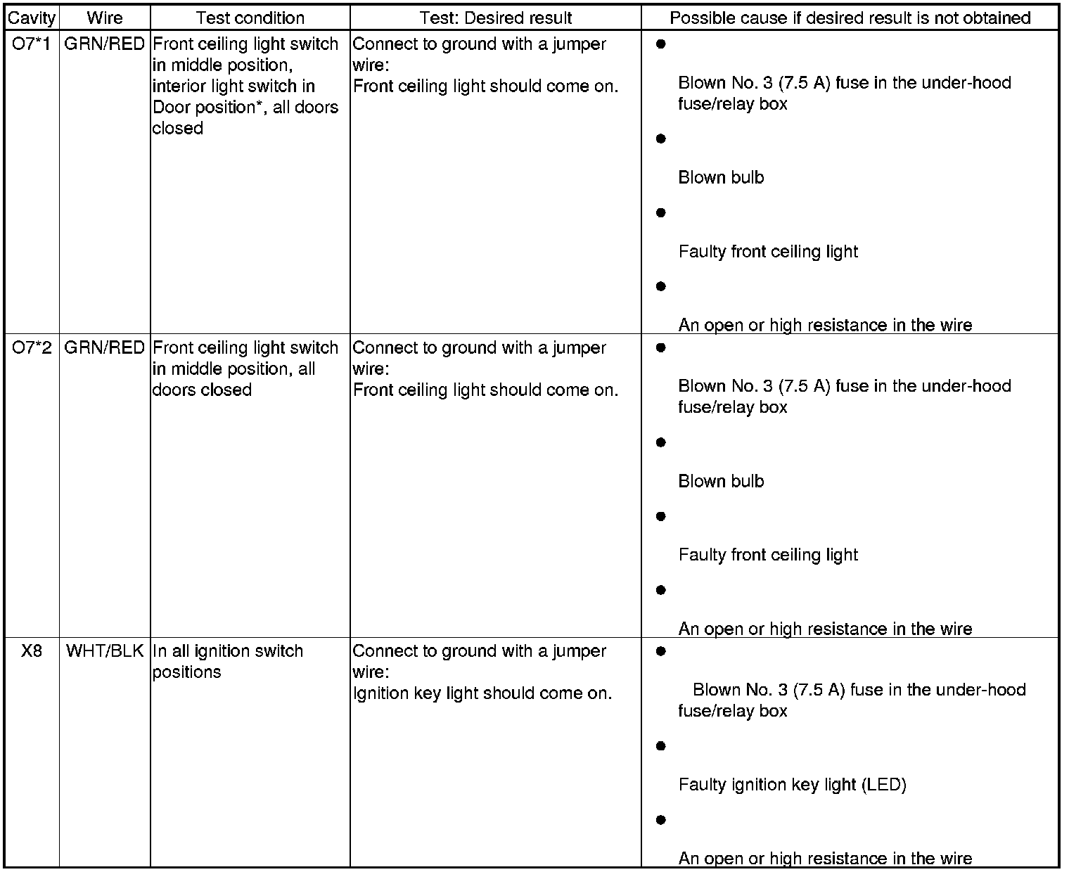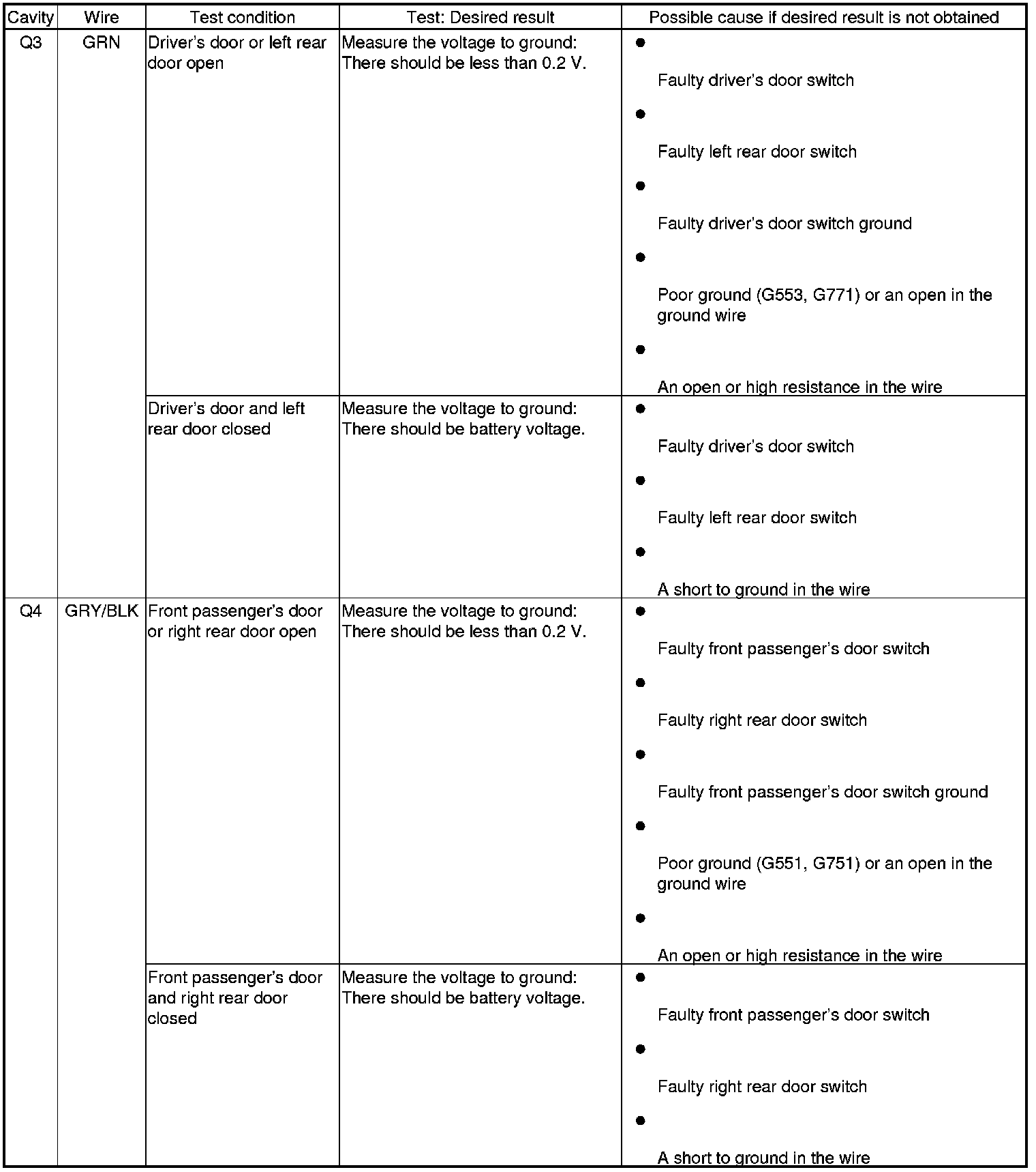 Entry Lights Control System (Multiplex Control Unit) Input Test