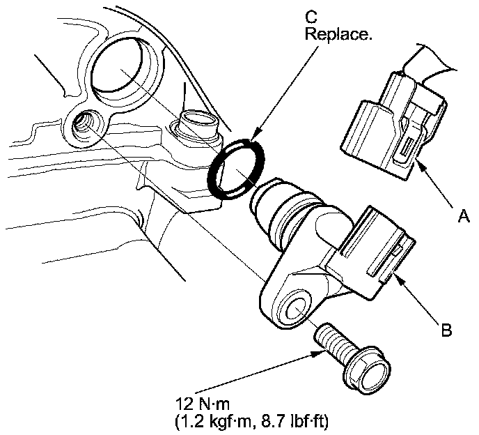 5. Install the parts in the reverse order of removal with a new O-ring (C) coated with clean engine oil.
