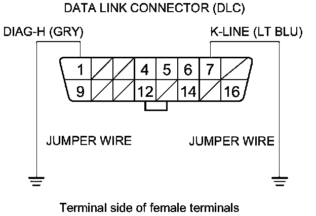 18. Connect DLC terminals No. 1 and No. 7 to body ground with a jumper wire.