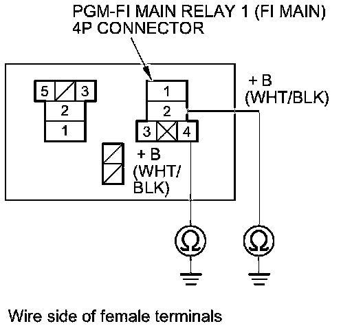 41. Check for continuity between PGM-FI main relay 1 (FI MAIN) 4P connector terminal No. 1 and body ground.