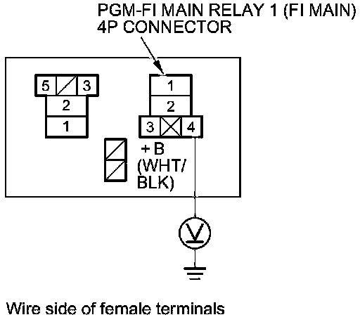 61. Measure the voltage between PGM-FI main relay 1 (FI MAIN) 4P connector terminal No. 4 and body ground.