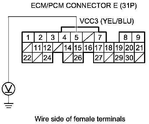 83. Measure the voltage between body ground and ECM/PCM connector terminal E5.