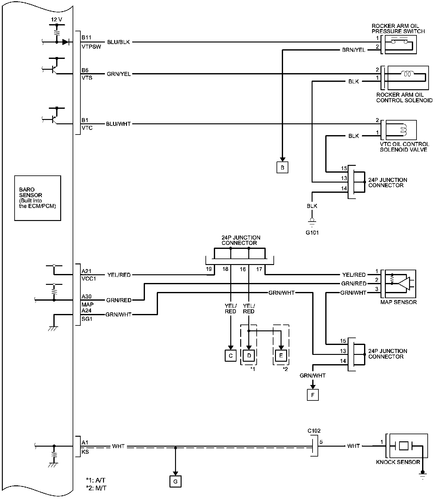 ECM/PCM Inputs and Outputs at ECM/PCM Connector B (24P)