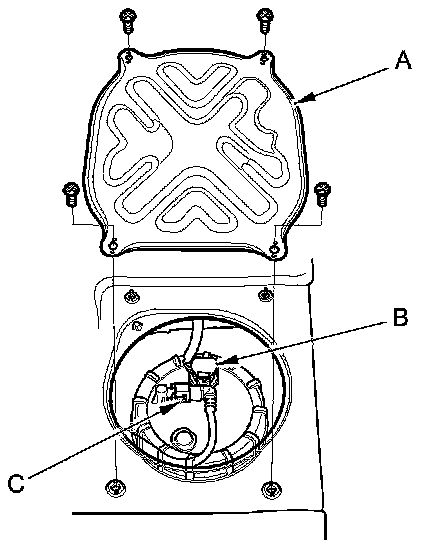 5. Disconnect the quick-connect fitting (C) from the fuel tank unit.
