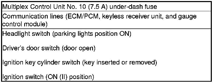 When the ignition switch is turned to ON (II), the multiplex control unit, gauge control module, and ECM/PCM wake up at the same time without "talking" to each other through the communication lines. When any switch in the multiplex system is turned on, it wakes up its related control unit which, in turn, wakes up the other units.