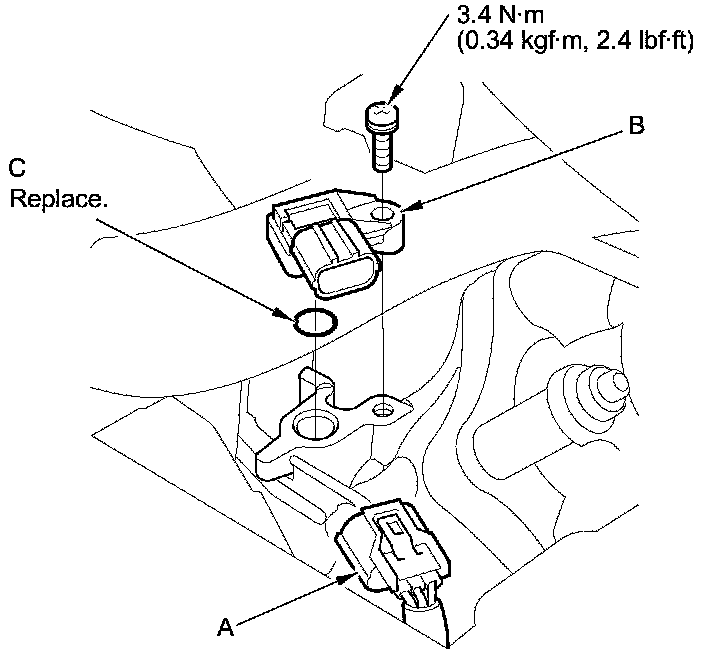 3. Install the parts in the reverse order of removal with a new O-ring (C) coated with clean engine oil.