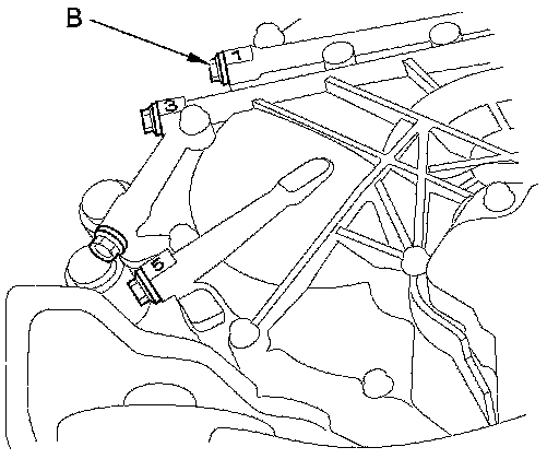 12. Connect the A/T oil pressure gauge to the 1st clutch pressure inspection port (B).