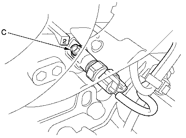 13. Remove the intake air duct and the air cleaner assembly Service and Repair, and connect the A/T oil pressure gauge to the 2nd clutch pressure inspection port (C). Then temporarily install the air cleaner assembly and the intake air duct.
