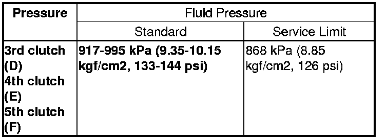 25. Shift to 5th gear in D, and measure the 5th clutch pressure (F) while holding the engine speed at 2,000 rpm.