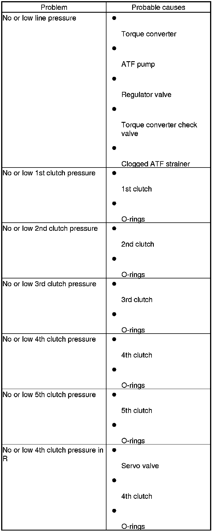NOTE: Higher pressure may be noticed if measurements are taken with the shift lever in any position other than P or N.