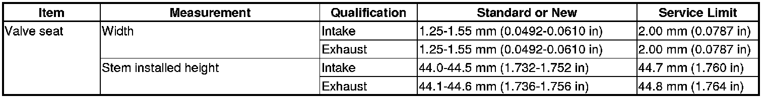 Valve Seat Specification(s)