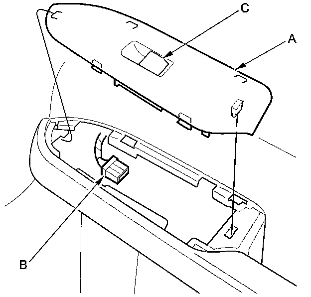 2. Disconnect the 5P connector (B) from the passenger's power window switch (C).