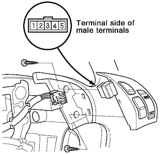 - If there is no continuity in one or both positions, replace the cruise control combination switch.