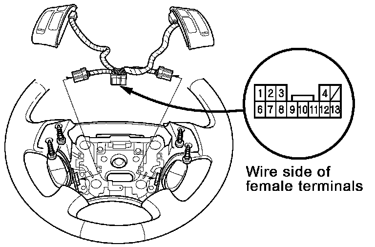 - If there is continuity, and it matches the table, but the switch failure occurred on the cruise control input test, check and repair the wire harness on the cruise control combination switch circuit.