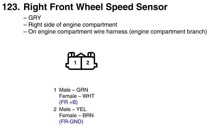 View 123 - Right Front Wheel Speed Sensor Connector View
