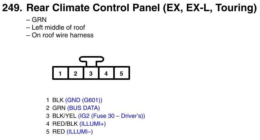 View 249 - Rear Climate Control Panel Connector View (EX, EX-L, Touring)