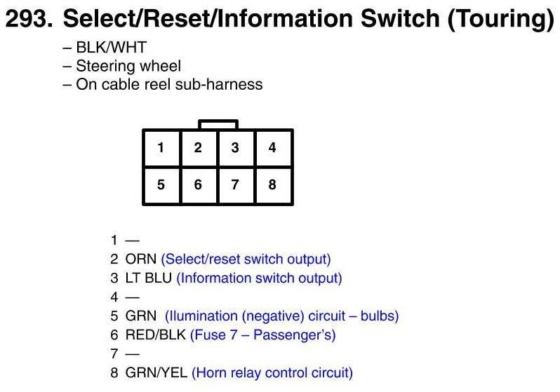 View 293 - Select/Reset/Information Switch Connector View (Touring)