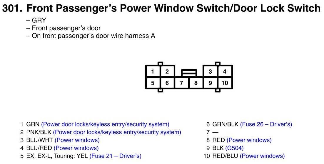 View 301 - Front Passenger's Power Window Switch/Door Lock Switch Connector View