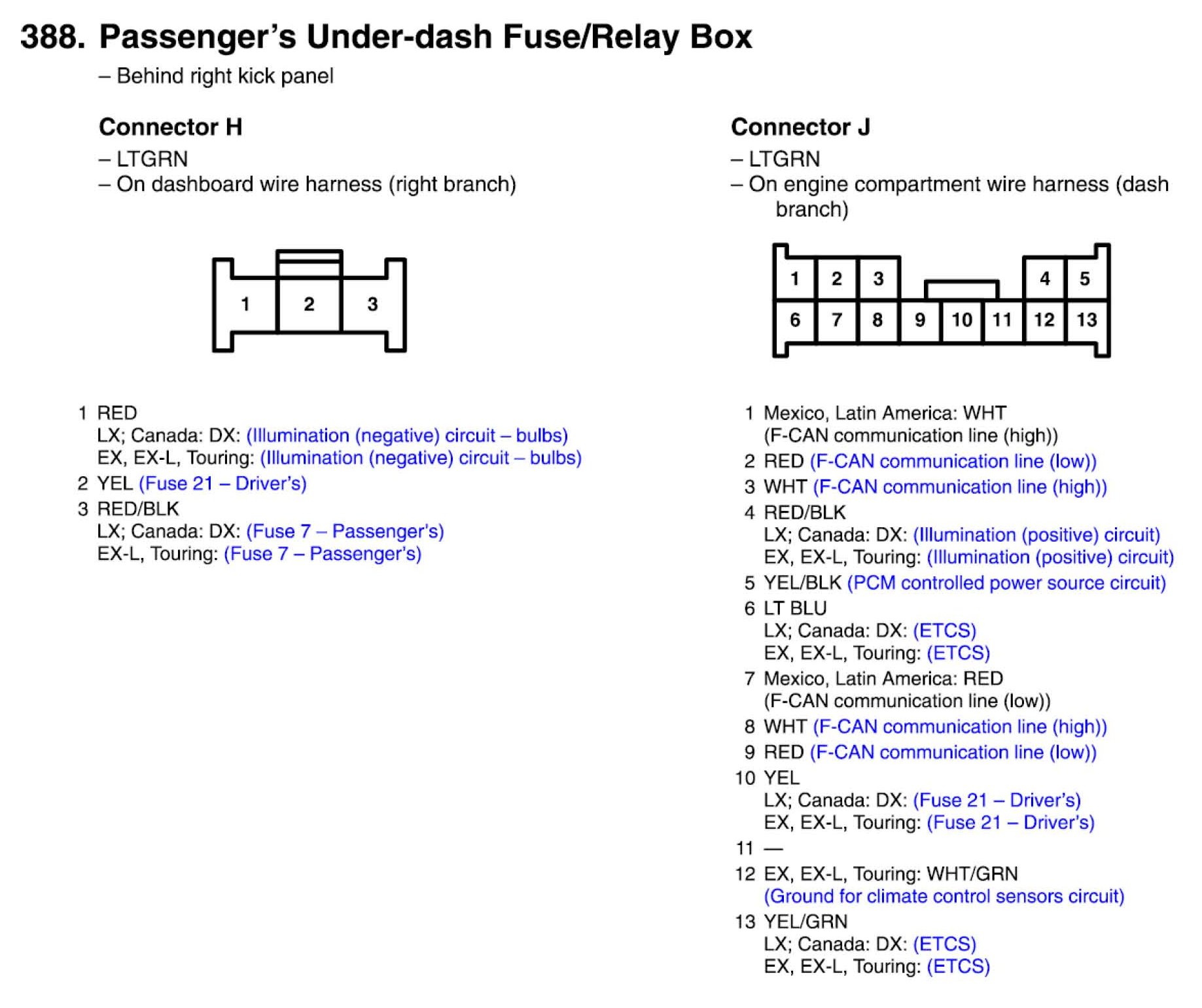 Passenger's Under-dash Fuse/Relay Box Connector View