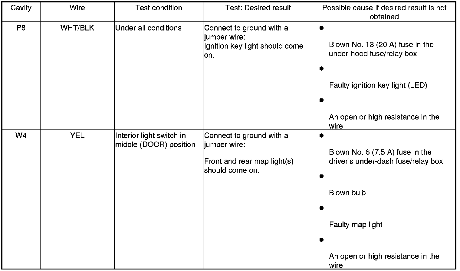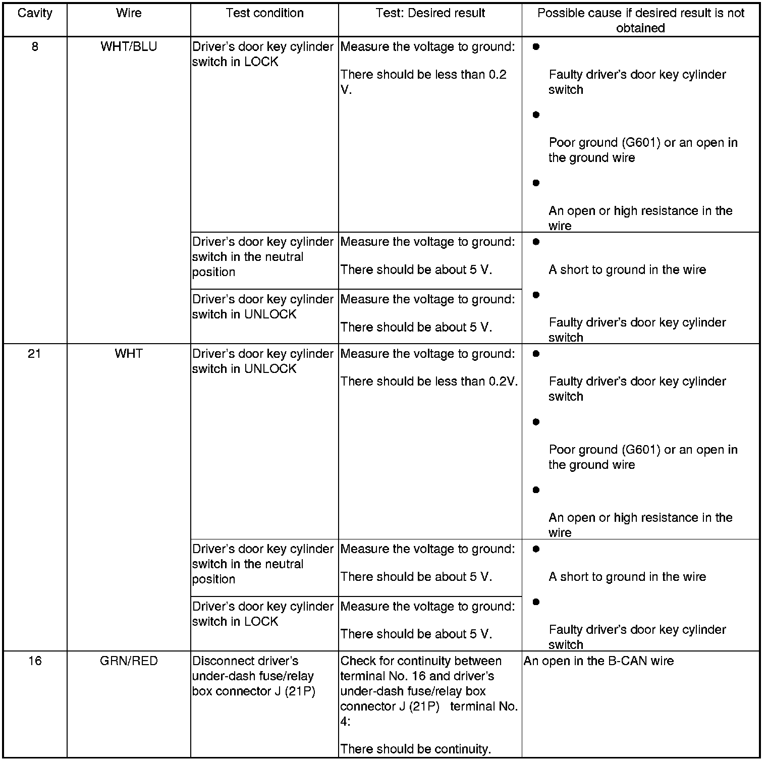 5. With the driver's under-dash fuse/relay box connectors still disconnected, do these input tests at the connector.