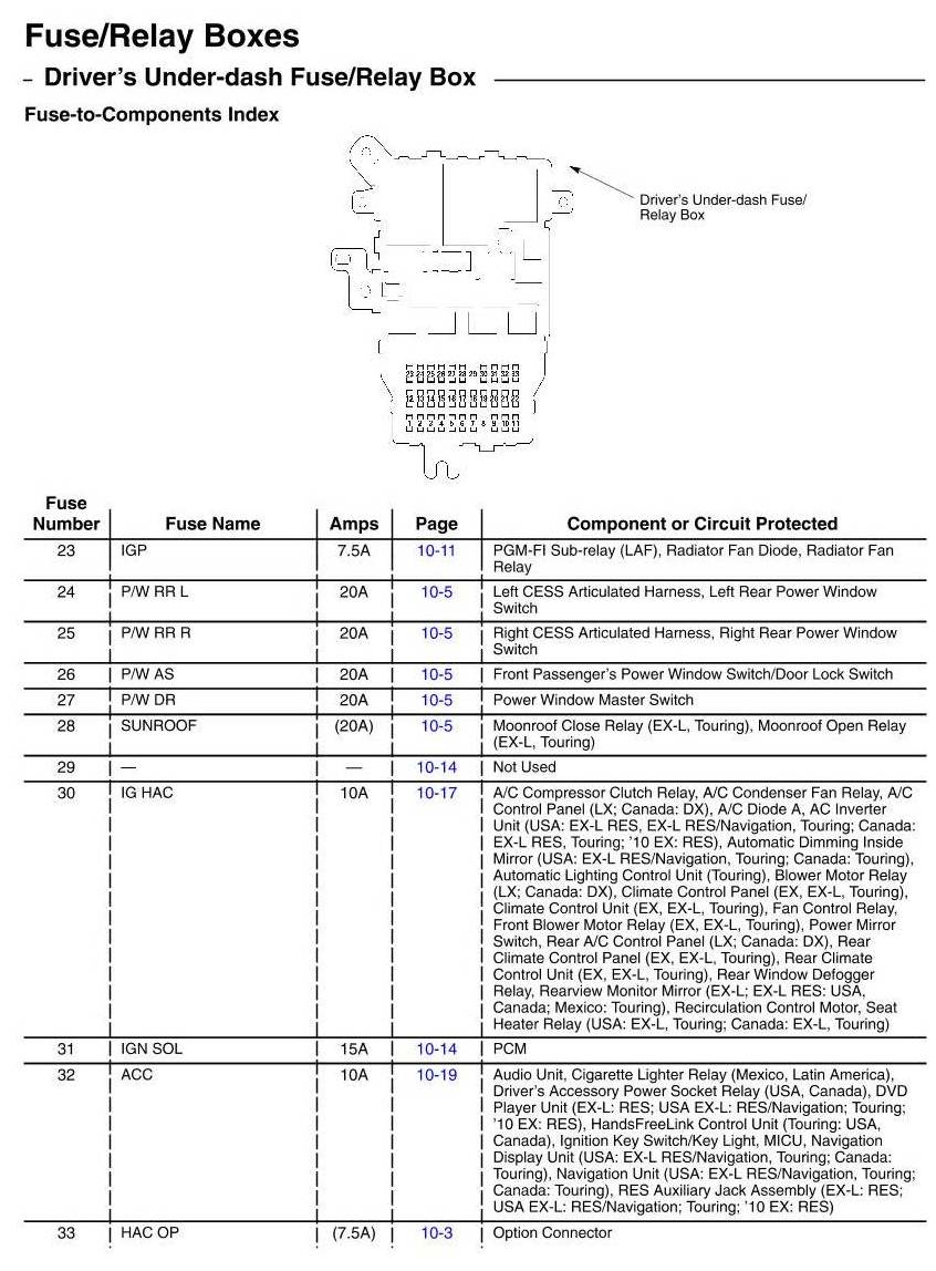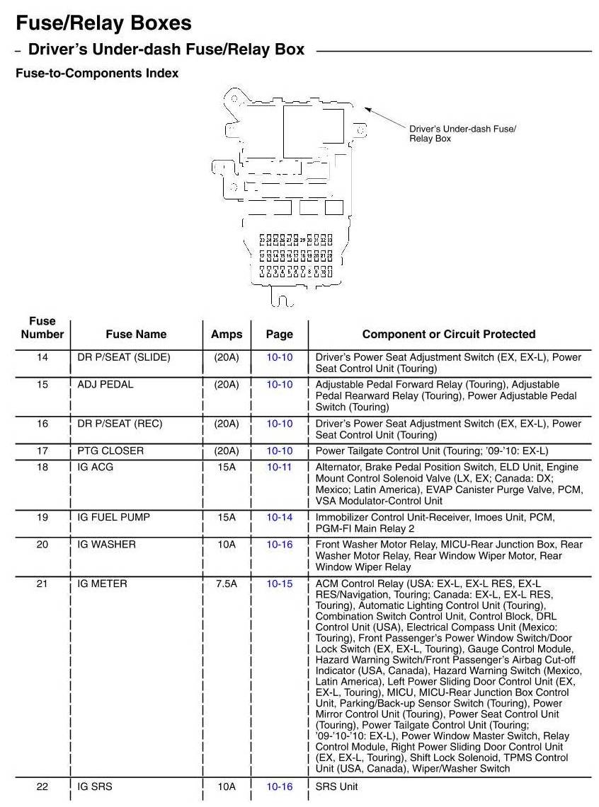 Driver's Under-Dash Fuse/Relay Box - Fuse-To-Components Index
