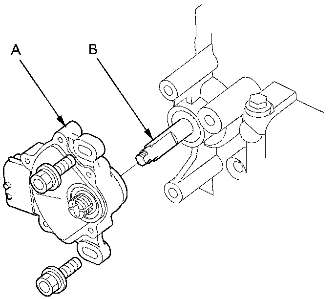 12. Install the transmission range switch (A) gently over the selector control shaft (B), and install the bolts loosely.