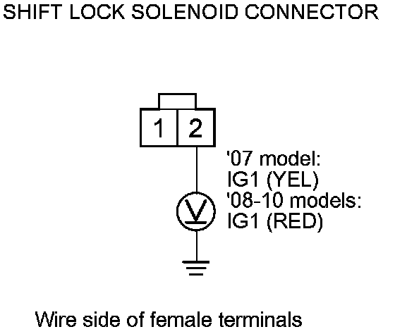 6. Disconnect the shift lock solenoid connector Shift Lock Solenoid Replacement.