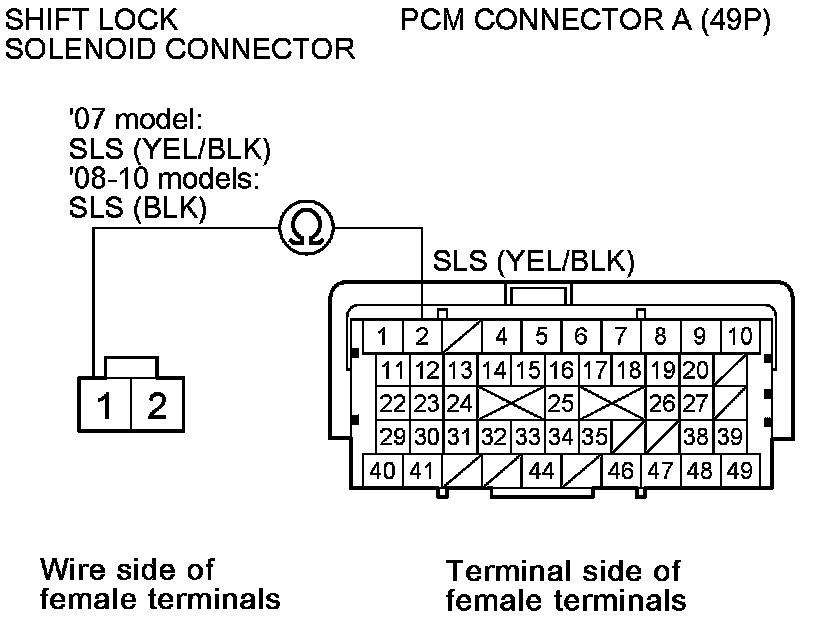 Repair open in the wire between PCM connector terminal A2 and the shift lock solenoid connector.�