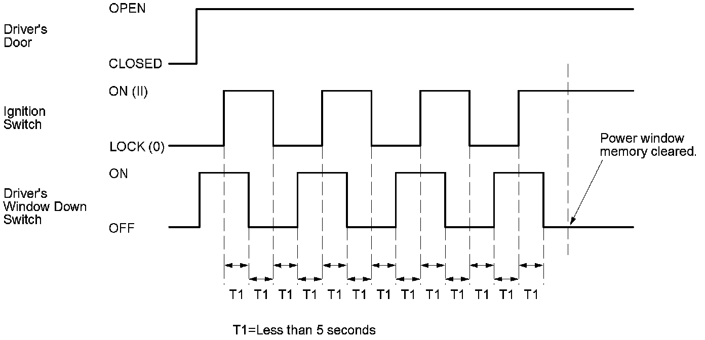 If the window still does not work in AUTO, repeat the procedure several times, paying close attention to the 5 second time limit between steps. If it still does not work, go to B-CAN System Diagnosis Test Mode A Troubleshooting - B-CAN System Diagnosis Test Mode A.