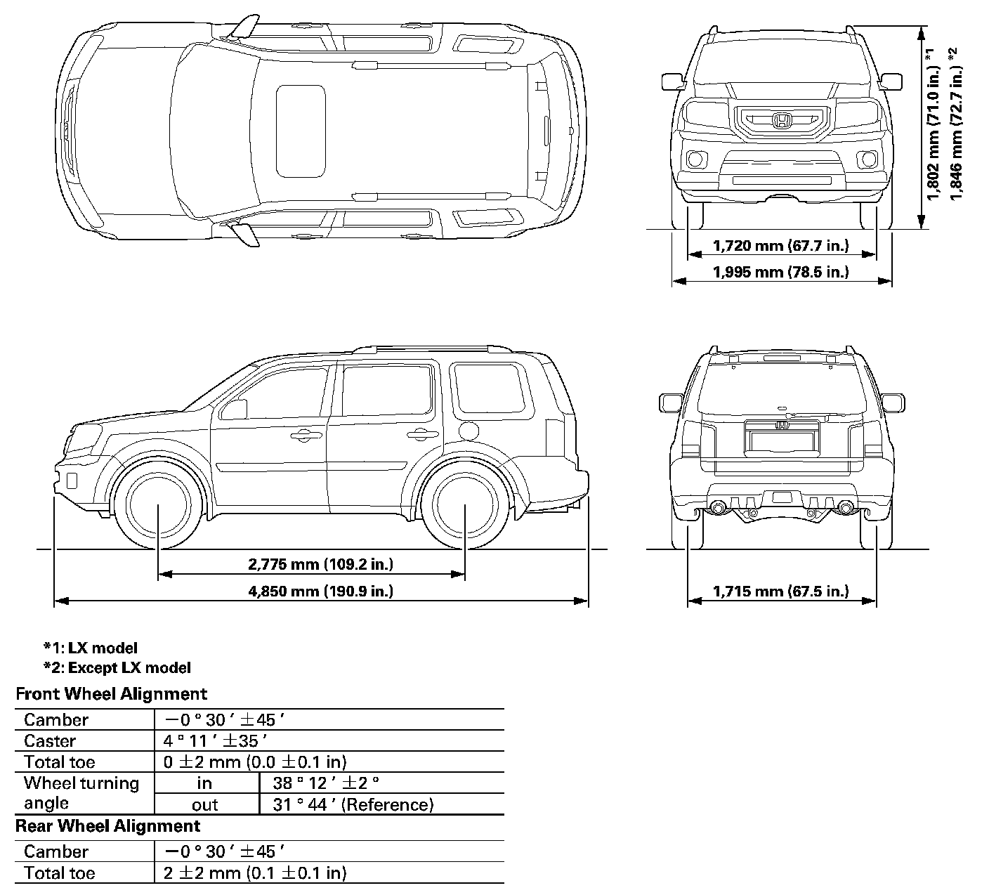 Body Specifications/Wheel Alignment: